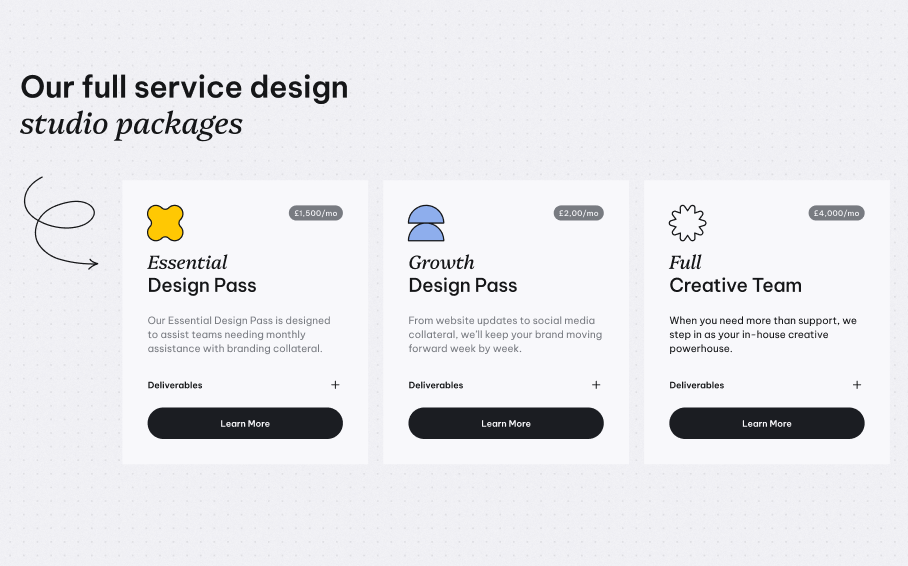 Our Growth Design Pass and Full-Stack Creative Team give you: